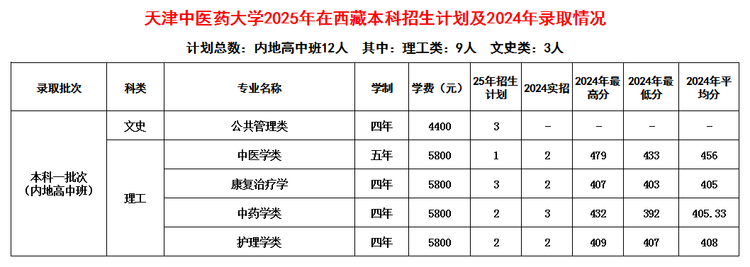 2025年在西藏本科招生计划及2024年录取情况