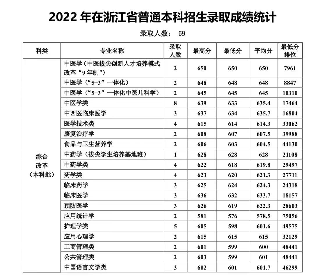 2022年在浙江普通本科招生录取成绩统计