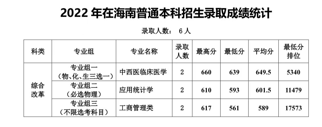 2022年在海南普通本科招生录取成绩统计
