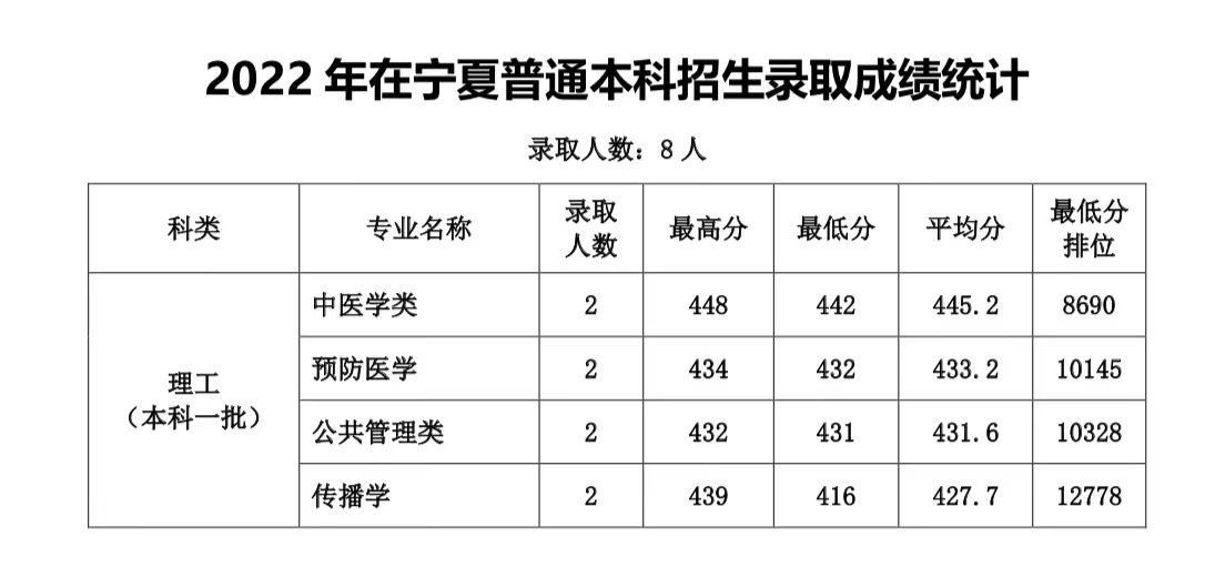 2022年在宁夏普通本科招生录取成绩统计