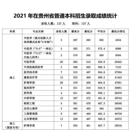 2021年在贵州省普通本科招生录取成绩统计