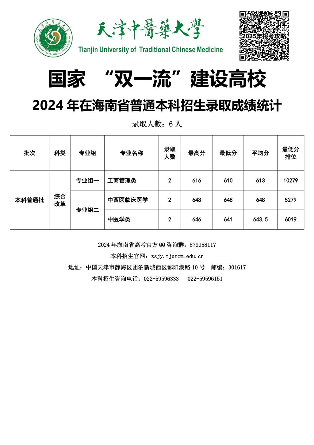 2024年在海南普通本科招生录取成绩统计